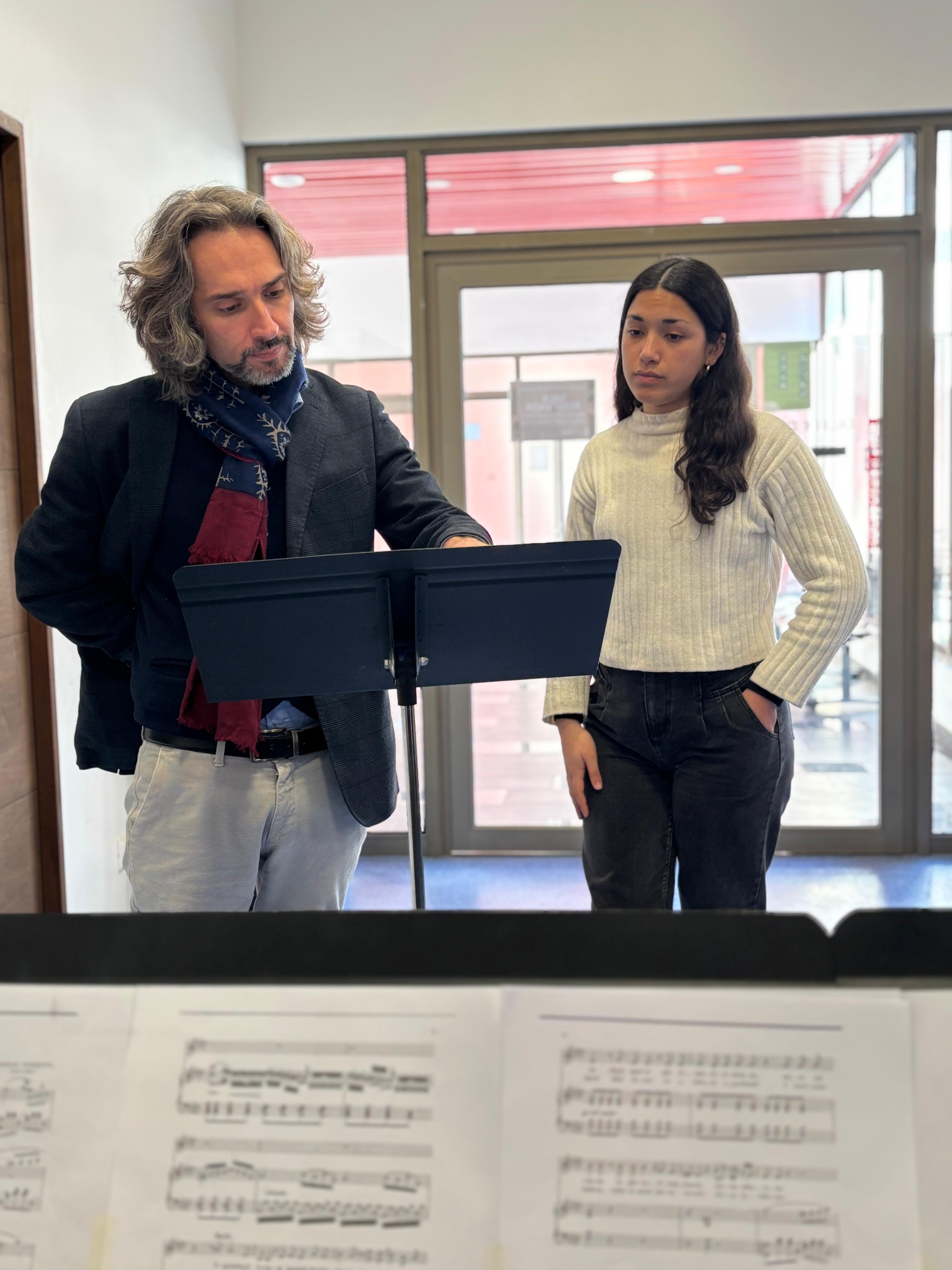 Cada mañana llega al Polo Lírico antes que nadie. Estudia técnica vocal, idiomas, actuación. Está construyendo su instrumento.
